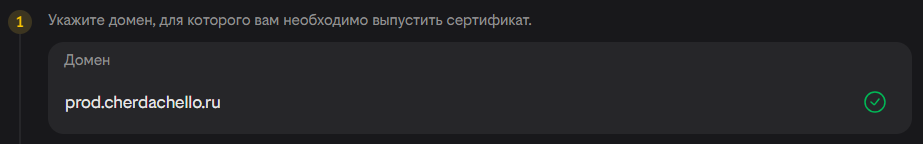 Добавьте ресурсную запись в DNS-сервисе, который обслуживает ваш домен. Скопировать запись можно в соответствующей строчке. Пример:_acme-challenge.prod.cherdachello.ru 3600 CNAME _acme- challenge.cdncf.ru).