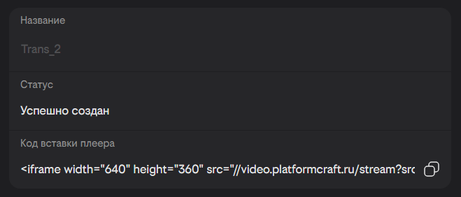 Снизу находится код вставки плеера. Если хотите, скопируйте его, чтобы встроить в собственный сайт.