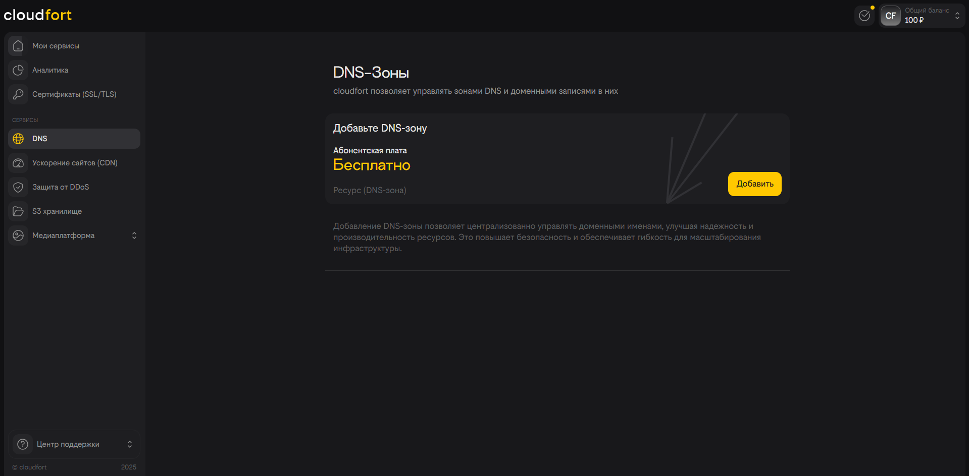 Шаг 1. На главной странице в разделе «Мои ресурсы» выберите пункт «DNS-зоны».