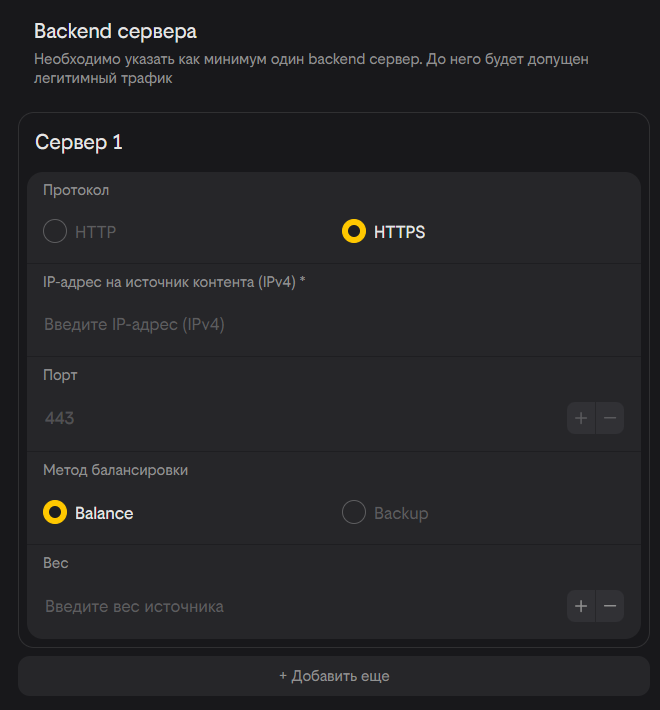 Вы можете указать несколько серверов – для этого нажмите на кнопку «+ Добавить ещё один».
