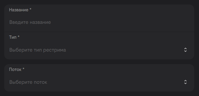 - Поток для рестриминга. Выберите поток из выпадающего списка потоков, которые доступны для этой трансляции.