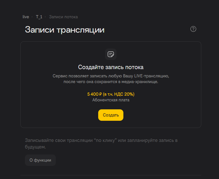 Шаг 3. После создания медиахранилища вернитесь к Шагу 2. Теперь в разделе «Запись потока» нажмите кнопку «Создать».