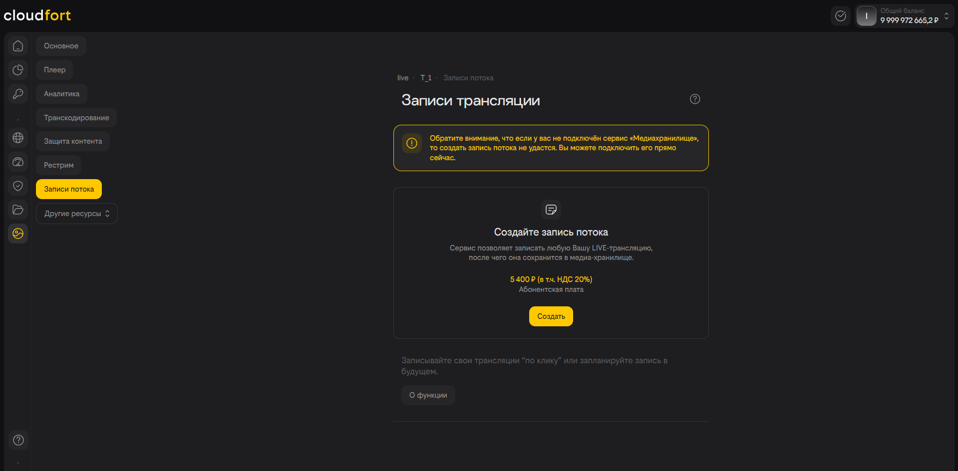 Запись потока позволяет сохранить Live-трансляцию в качестве видео-файла для дальнейшего просмотра. Платформа cloudfort предоставляет возможность записать любую Вашу Live-трансляцию, после чего она сохранится в медиахранилище.