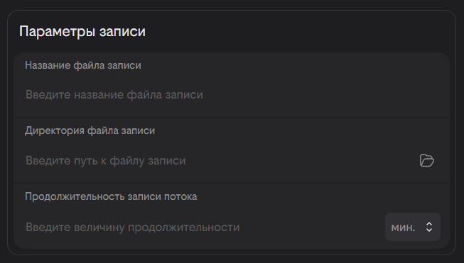 - Продолжительность записи потока (может быть указана в часах, минутах или секундах)