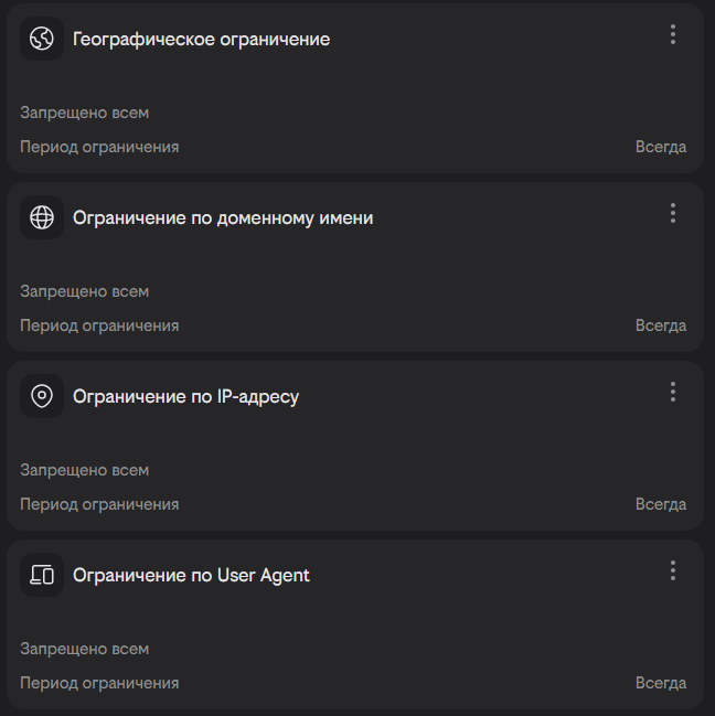 Эта опция поможет избавиться от нежелательных посетителей Вашего веб-ресурса. Вы можете создать правила, разрешающие или запрещающие отображение контента по различным признакам. Ограничьте отображение Вашего контента: