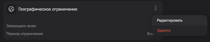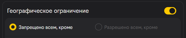- По географии, запретив отображение контента определенной стране и разрешив его конкретному региону или наоборот.
