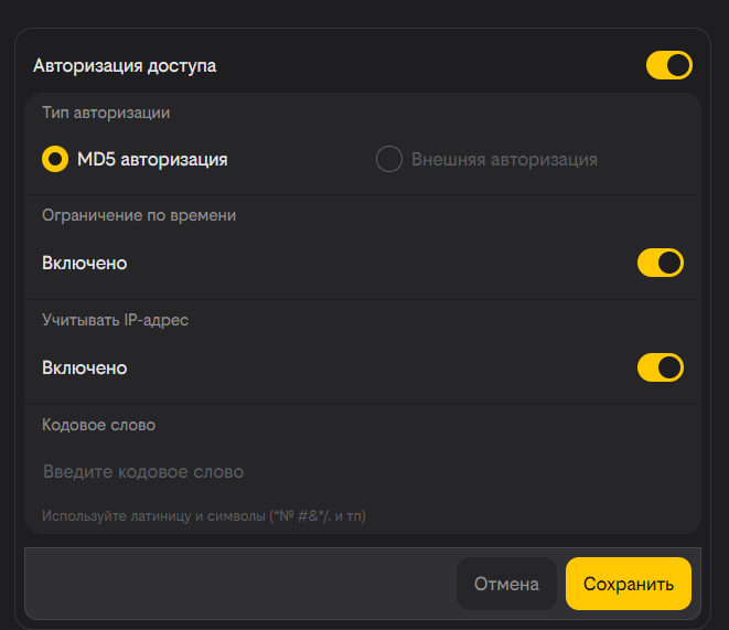 Включив свитчер «Учитывать IP адрес», Вы позволите алгоритму авторизации проверить, что ресурс запрошен именно с того IP-адреса, для которого была сформирована ссылка (опционально).