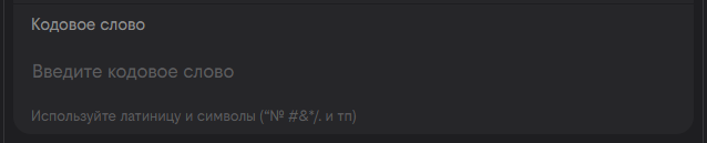 Также обязательно укажите кодовое слово: